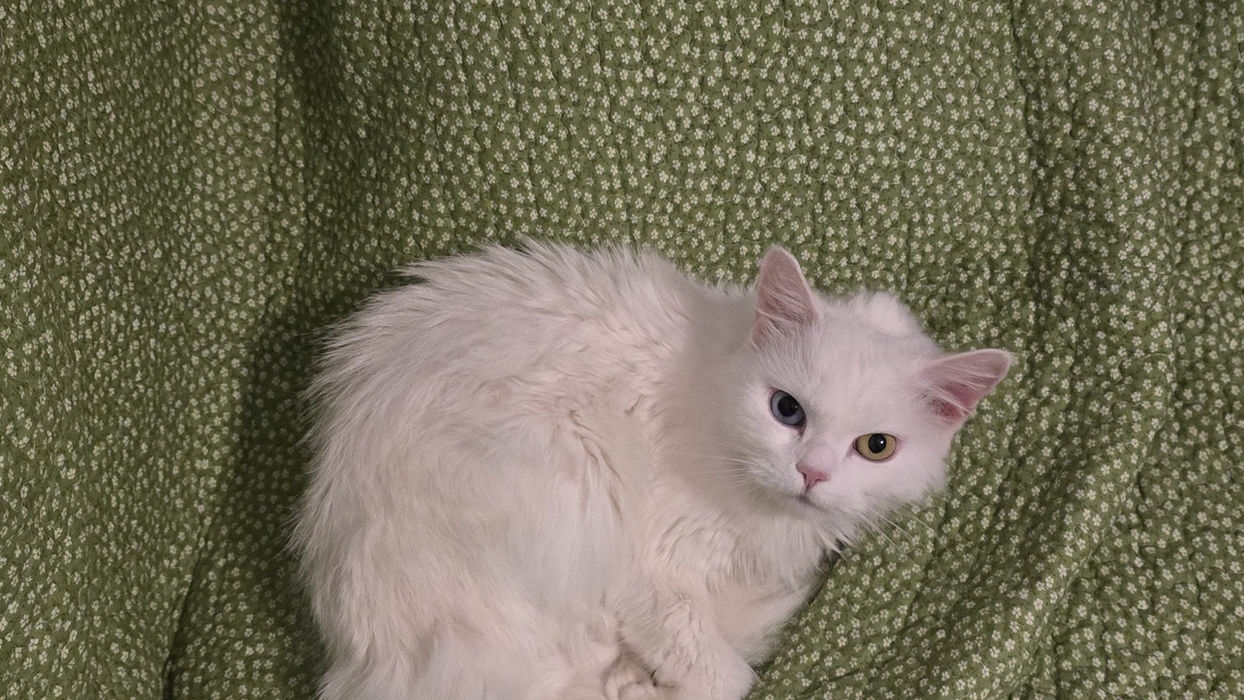 7lwyat is a calm cat, she sleeps with us on the bed at night.