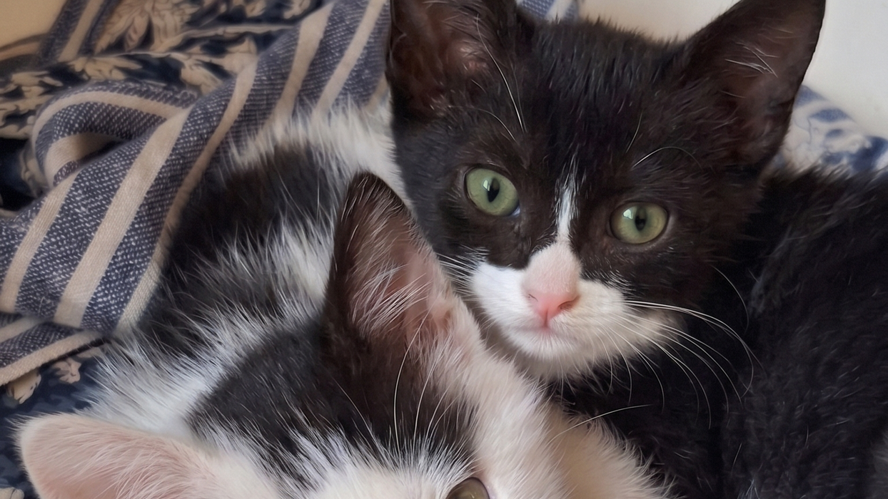 They keep each other company so they don't need you all the time and enjoy simple toys like balls, ribbons and anything they can chase, and are settling into a routine of play, eat, and sleep. They’re looking for a safe home where they can continue to grow into loving, playful companions.