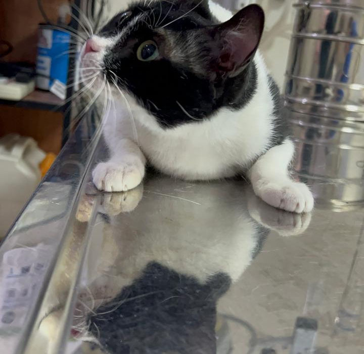 Safrouta got treated and now she regained full mobility but unfortunately we cannot keep her locked in a cage longer. She deserves a loving and caring family to overcome this trauma. Due to her previously broken neck (it healed but made her head a little bit twisted to the side) she will not be able to be adopted in a house with kids and other pets to prevent any re-injuries. She walks and runs normally, uses her litterbox by herself and prefers soft food over dry food. She's fully vaccinated and neutered. She has a trauma from the "catching procedure" so she won't behave the best if cornered but she is very docile and doesn't mind being cuddled. She is very good with nail trimming and injections (not needed). Sometimes she likes to play but mostly likes to cuddle with a blanket. She doesn't need medications but only follow up once per year.