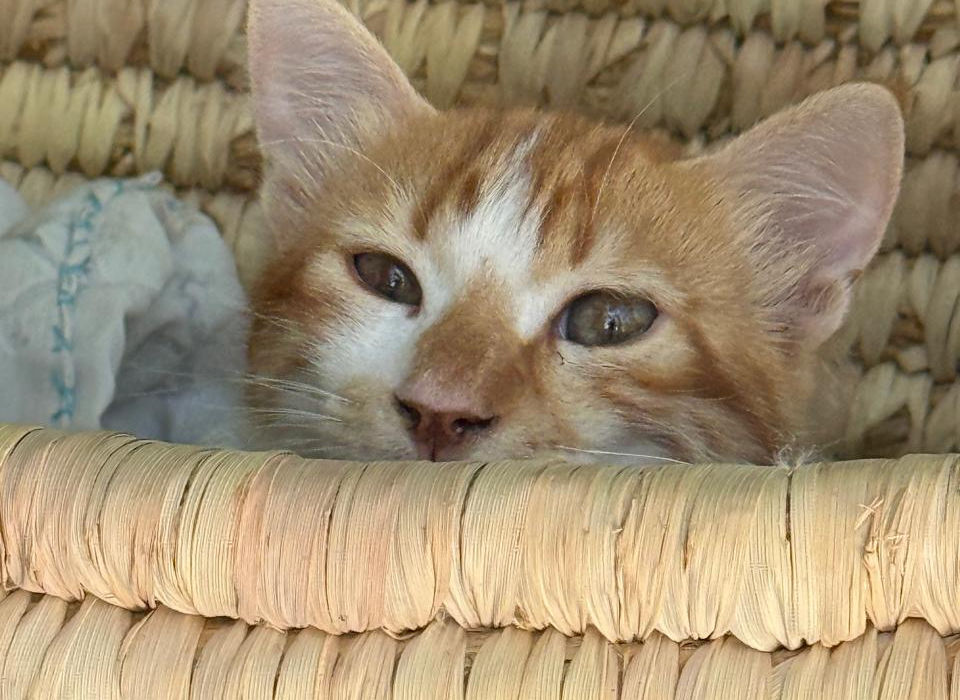 Tiny is 2 months old, sweet and calm he likes to sleep and play with other cats. He is a good eater and mostly eats a mix of kibble and fresh food.